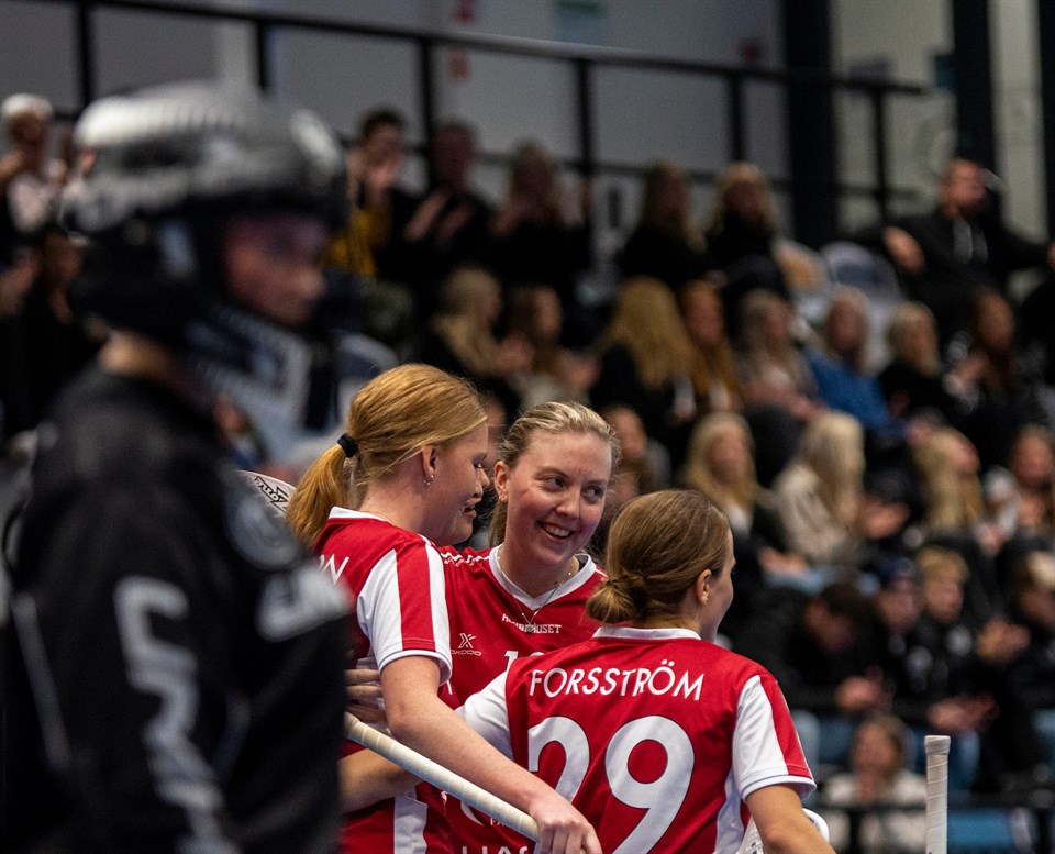 Hovslätt dam besegrade under onsdagskvällen Växjö IBK Utveckling med 8-5 i Fortnox Arena i Växjö och man fortsätter att ånga på i Smålandscupen. I och med kvällens vinst är man därmed vidare till semifinal. I seriespelet är Hovslätt Dam obesegrade och under onsdagskvällen likaså efter att man besegrat Växjö IBK Utveckling med 8-5 i Fortnox Arena i Växjö i Smålandscupen. En stark insats där Stina Wilsson inledde målskyttet efter ca fem minuters spel. Junioren My Gustafsson ökade sedan på till 2-0 halvvägs in i akten. Men hemmalaget ville annat och både reducerade och kvitterade innan perioden var över. Stina Wilssons andra mål för kvällen gav gästerna återigen ledningen inledningsvis i mellanakten och det var också startskottet på en offensiv utan dess like. Hovslätt hade inom loppet av 10 minuter gått från 3-2 till 6-2 och i princip avgjort tillställningen efter halva perioden spelad. Med 2.24 kvar av andra perioden reducerade Växjö och försökte därmed skaka liv i målprotokollet. I den tredje perioden skulle det dröja fram till 8.37 innan Tilda Almqvist ökade på till 3-7. Växjö reducerade två gånger om och skapade ändå lite nerv i matchen. I slutet av tredje akten tog man även time out och försökte få till ännu en reducering, men Hovslätt var för starka även denna gång och i öppen kasse kunde till slut Olivia Jonsson fastställa slutresultet till 8-5 och det var även hennes andra mål för kvällen. Övriga målskyttar i Hovslätt var Sofia Nilsson, My Gustafsson, Tilda Almqvist, Alicia Forsström. I och med vinsten är man vidare till semifinal i Smålandscupen. En stark bedrift! (Foto: Marcus Vilson)
