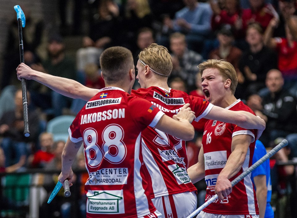 Hovslätt Herr förlorade premiären mot Skoghall IBK med 6-5 under söndagseftermiddagen i Arenan i Idrottshuset i Jönköping. Men, trots förlust ser det ljust ut för fortsättningen. Det blev inte riktigt den historiska premiär som Hovslätt Herr hade tänkt sig under söndagseftermiddagen, då man gästades av Skoghall IBK hemma i Idrottshuset i Jönköping. Men, trots förlust ser det ljust ut fortsättningsvis. Det var två premiärspelande lag som drabbade samman i Idrottshuset i Jönköping under söndagseftermiddagen och detta syntes tydligt inledningsvis Nervösa avslut och passningar och ett par individuella felsteg i positionerna. Något som hör till en premiär. Matchen i sig var annars fartfylld och chansrik från båda håll, men tack vare två starka målvaktsinsatser hölls siffrorna nere. Gästerna tog ganska snabbt ledningen och gjorde både 1-0 och 2-0 innan Hovslätt vaknade till och visade prov på fint spel. Efter ett fantastiskt samspel var Adam Bäck nära att reducera, men bollen gick strax utanför målet. Istället skulle reduceringen kom inledningsvis i mellanakten då Wille Knuthas klev fram och fick på ett kanonskott som gästernas målvakt inte hann se. Efter detta tog hemmalaget kommandot spelmässigt och man hade ett stort bollinnehav, men trots detta var det svårt att hitta riktigt ända fram. Skoghall ökade på till 3-1 halvvägs in i matchen, men Melwin Knuthas ville också visa att han kunde göra mål. Kanske var reduceringen till 2-3 genom just Melwin årets mål. Med klubban mellan benen snärtade han till bollen framför gästernas målvakt och visade vilka känsliga handleder han har. Det var dock inte slut där. I slutminuterna av andra perioden gjorde lagen var sina mål och Melwin sitt andra. Vi hade 3-4 och en nervkittlande tredje akt att se fram emot. Den tredje perioden startade som en mardröm för Hovslätt, då gästerna efter endast 01:10 ökade på till 5-3. Melwin Knuthas fullbordade sedan sitt hattrick när han säkert satte en straff. Hemmalaget sökte sedan få till en kvittering, men bollen tog i både stolpe och ribba och detta speglade en stor del av matchen för Hovslätt. Man hade många chanser, men förtvivlat svårt att få in bollen. Innan matchen var slut hade gästerna gjort 6-4 innan Johan Nygårdh reducerade till 6-5 med 55 sekunder kvar. Mer hände inte och Hovslätt fick se sig besegrade med uddamålet i en match som kunde ha gått åt vilket håll som. Men en bra insats av killarna när nerverna väl släppte och man kom in i det snabba tempot. Så det ser onekligen ljust ut för framtiden. Närmast väntar Malmö FBC på bortaplan den 24 september. Foto: Marcus Vilson