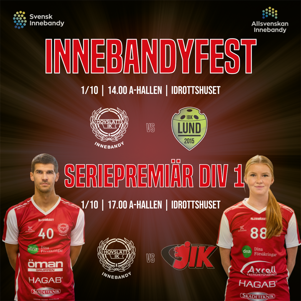 Det vankas innebandyfest under lördagen i A-Hallen i Idrottshuset i Jönköping då både herr och damlaget ställs inför tuffa bataljer. Vi har tidigare nämnt att det blir en rivstart på oktoboer månad med dubbla matcher, innebandyfest och hett derby i A-Hallen i Idrottshuset i Jönköping. Två matcher som garanterat kommer att infria fansens förväntningar. För Hovslätt herr, som redan spelat två inledande matcher har denna en speciell betydelse, då man i princip under lördagen gör sin riktiga hemmapremiär i sin egen borg A-Hallen. Vi har pratat med tränare Max Gustafsson om hans tankar inför matchen och vad han tror på för matchbild. - Det ska bli otroligt kul med ytterligare en match, speciellt väldigt kul att få en premiär i A-Hallen. Jag hoppas på att det kommer att bli bra tryck där inne. Lund kommer garanterat att komma väldigt sugna till den här matchen då de har förlorat de två senaste matcherna. Vi vill vara fortsatt starka och fortsätta att vinna matcher och vinna vår andra raka. Jag hoppas att vi kommer att ha mycket pondus i vårt spel imorgon och att Lund sätter emot där, så att det blir en rolig och bra matchbild. Jag att vi ska spela det spelet vi pratat om i veckan och det vi vill förbättra från senaste matchen samt det vi vill tänka på inför Lund, så jag hoppas och tror verkligen på en rolig match. Jag hoppas dessutom verkligen att få se många laddade supportrar på plats som hejar fram Hovslätts IK till tre nya fräscha poäng. Herrlaget är först ut med matchstart redan kl. 14.00. Har du inte säkrat din biljett redan, så kan du göra det via nedan länk. Den andra matchen för dagen är en väldigt intressant match, Då är det dags för vårt damlag som premiärspelar mot JIK Utveckling med matchstart kl. 17.00 i A-Hallen. En match som även den kommer att bli otroligt spännande. Inte nog med att det är derby mot husrivalen JIK, utan det är även starten på återtåget tillbaka till Allsvenskan med nya huvudtränaren Frida Ingvarsson vid rodret. Damlaget har haft en stark försäsong där man bland annat vann turneringen Björnslaget och egentligen bara förlorade en match. Vilket tyder på en intressant säsong. Vi fick även några ord med tränare Frida Ingvarsson om hennes tankar inför matchen. - Jag tycker att det känns bra. Tycker vi framförallt har fått ihop ett gott gäng som har hittat tillbaka till glädjen till innebandyn. Att ha både seriepremiär och derby i första matchen är speciellt, många känslor i kroppen. Så på lördag tror jag inte det kommer vara den finaste innebandyn vi sett, men alltid roligt med matcher där det är just mycket känslor och hög fart, vilket jag tror kommer vara matchbilden på lördag. Jag har en go' känsla i kroppen och om vi gör det vi ska får vi självklart med oss 3 pinnar! Damerna inleder alltså återtåget till Allsvenskan kl. 17.00 och vi hoppas på en fin publik. Vi tackar båda tränarna och önskar dem stort lycka till! Matchbiljett