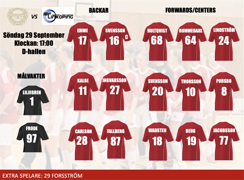 • Match mot IBF Linköping Söndag 29/9 17.00...