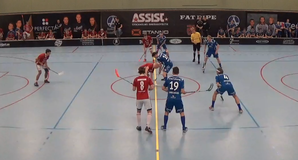 Söndagens match borta mot Älvsjö blev tyvärr inget trendbrott utan vi fick stryk, ännu en gång med uddamålet, efter att matchen slutar 8-7. En jobbig uppförsbacke från förstaperioden blev övermäktig denna gång, även om spelet ändå var hyfsat i stora delar. Laget från start Målvakt: Jonas Karlsson 1) Adam Fransson, Jeper Persson, Ola Hyltén, Anton Larsson, Markus Eriksson 2) Leo Olsson, Hampus Ekman, Pelle Tarenius, Viktor Ylenfors, Ludvig Eriksson 3) Simon Eriksson, Jens Rosander (K), Wille Knuthas, Simon Josefsson, Jonathan Persson Extra: Jonas Wängefors, Jakob Andersson Matchen Första perioden är egentligen en ganska jämn period där vi nog har lite mer boll även om Älvsjö är lite hetare i avslutslägena. Perioden slutar med en 4-0 ledning och givetvis var det jobbigt när de får en så bra start av matchen. Tidigt kommer både ettan och tvåan innan vi börjar komma fram med avsluten. När de gör tredje målet en stund senare, ganska turligt via ett ben/klubba, kändes det jobbigt. Innan periodpausen får vi också en ganska billig utvisning som Älvsjö utnyttjar tämligen omgående. Även om siffrorna var stora var ändå matchbilden relativt jämn efter första. I upptakten av andra perioden är det som en helt ny match som spelas. Vi kommer tidigt upp i pressen och får snabb utdelning. På inledande fem minuterna gör vi tre snabba mål och det är match igen. Älvsjö blev nog lite nervösa när deras spel och ledning snabbt höll på att försvinna. Trots bra spel från vår sida så är det dock Älvsjö som på nytt får lite kommando då man sätter dit 5-3 efter en frislagsvariant. I samband med målet får vi en protestutvisning och de får hålla i bollen lite även om vi klarar av boxplay. Drygt minuten senare kommer nästa reducering till 5-4, men glädjen blir kortvarig. Bara drygt minuten efteråt gör de nämligen återigen mål och det är 6-4 och två bollar upp. I sista minuten av andra får dock vi chansen i PP och det dröjer inte så länge innan Pelle Tarenius kan hitta yttersta maskan i krysset och reducera till 6-5, precis innan paus. Väldigt bra andraperiod där vi jobbar oss tillbaka in i matchen. Bra moral och här kliver vi verkligen fram och ställer frågor över hela banan. Till tredje var känslan att det kunde gå hur som helst och att det antagligen skulle bli ett gäng fler mål på tavlan. Tyvärr inleder vi perioden lite passivt och fortsätter inte riktigt det vi hade från andra perioden. Älvsjö tillåts ha bollen lite mer och man får också det viktiga 7-5 målet i inledningen av perioden efter en spelvändning. Några minuter senare är vi i anfallszon med hela laget och Älvsjö kan täcka ner ett skott och skicka fram bollen på ett friläge. Wängefors (inbytt) räddar situationen men Pelle Tarenius är i bakhasorna och stör vilket renderar i straff och avvaktande utvisning. Straffen blev ingen större succe då spelaren inte ens kom till avslut men i det efterföljande spelet i numerärt överläge gör man emellertid 8-5. Läget var givetvis tufft med tre bollar upp och drygt 12 minuter kvar men det kändes som att vi skulle kunna komma tillbaka. Ganska snabbt kommer också första reduceringen då Ludvig Eriksson hittar igenom med ett skott till 8-6. Tyvärr åker vi kort efter målet på en ny utvisning och även om vi lyckades lösa uppgiften tappade vi dyrbar tid i jakten på en kvittering. Tid 14:37 lyckas dock Simon Josefsson slå in ett direktskott och därmed även sitt tredje mål för kvällen. Nu fanns chansen men i de sista fem minuterna lyckas vi inte skapa extremt skarpa lägen. Vi tar timeouten vid 18:16 och försöker med sex man när det är drygt minuten kvar. Älvsjö lyckas dock spela kompakt och hålla oss på utsidan. Några skott lyckas vi få igenom och de har också nån chans men resultatet står sig matchen ut. Tredje är i stora delar helt ok. Tyvärr tappar vi lite momentum i början och går bort oss lite så de kan dra ifrån. Utvisningarna gör att vi tappar tid och rytmen för det är annars vi som har lite mer boll. Mer om matchen: Matchstatistik Tråkigt att vi på nytt åkte på en uddamålsförlust men det var ändå starkt jobbat att kunna komma tillbaka in i matchen efter att vi satte oss i en jobbig sits med 4-0 efter första perioden. Tyvärr har vi inte riktigt marginalerna med oss för tillfället och det är lite jobbigt när poängen inte trillar in. Tabellmässigt är situationen dock inte så annorlunda. Vi har fortfarande sex poäng + bra målskillnad tillgodo gentemot lagen på nedflyttning och det återstår nu bara fyra omgångar. Vi är fortsatt i starkt behov av en ytterligare seger som skulle betyda mycket för ett säkrat kontrakt, men även för självförtroendet. Det är bara att ta nya tag och nästa match är inte långt bort! Nästa match är redan nu på onsdag då vi tar emot JIK Ungdom i D-hallen kl 20:00. Väldigt viktig match för oss och dessutom mycket prestige som står på spel. Förhoppningsvis kommer det mycket folk som vill stötta på plats! Mer information inför matchen kommer imorgon kväll.