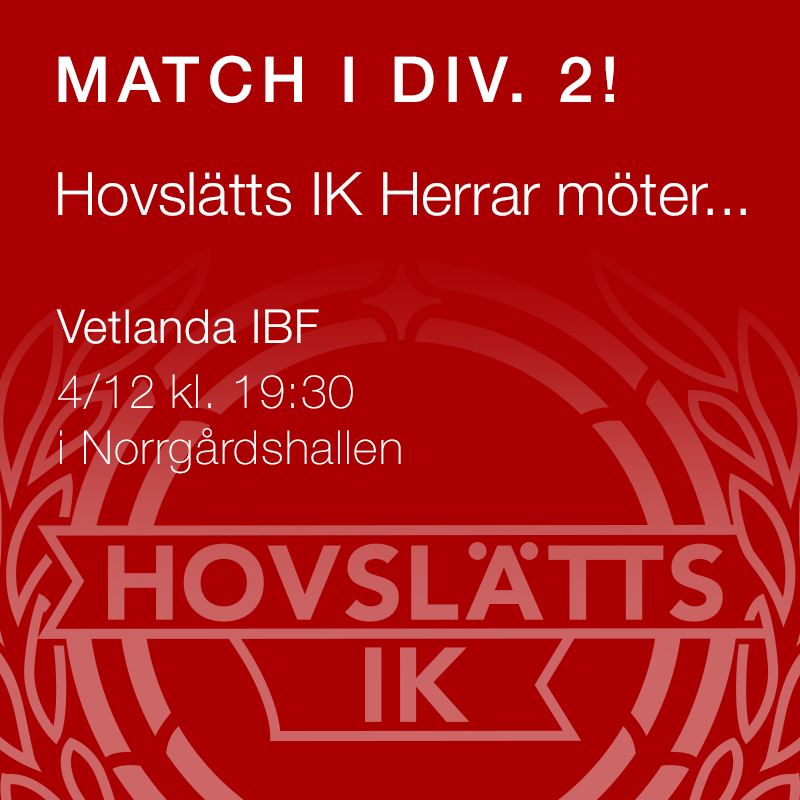 Imorgon spelar Hovslätt en ny tidig seriefinal, den här gång är det mot Vetlanda och på bortaplan. Filip Bengtsson säger så här om det: Ny seger i söndagens derby. Hur upplevde du matchen? Det var nog en ganska tråkig match från läktarens håll. Månsarp backar hem i egen målgård och bjuder inte upp till så mycket. Vi gör vad vi ska in en period och det räckte. Du är ny i laget för den här säsongen, hur känns det i laget? Det känns som man har kommit in bra och vi har en go stämning i gruppen. Spelet börjar sätta sig mer och mer vilket visar sig i tabellen. Du leder den interna utvisningsligan. Är du förvånad över det? Det är inget jag direkt har tänkt på, men vi har ju mycket "finlirare" i laget så det är väl ganska rimligt att en annan åker på lite utvisningar. På fredag ska ni ta er ner till Vetlanda för en ny seriefinal, dina tankar om den matchen och hur ska ni göra för att vinna den? Det kommer bli en riktigt tuff match. Vetlanda är ett taktiskt bra lag och har en hel del spets i sin trupp. Om vi gör ett stenhårt jobb över hela planen under 60 minuter är jag dock övertygad om att vi har goda chanser.