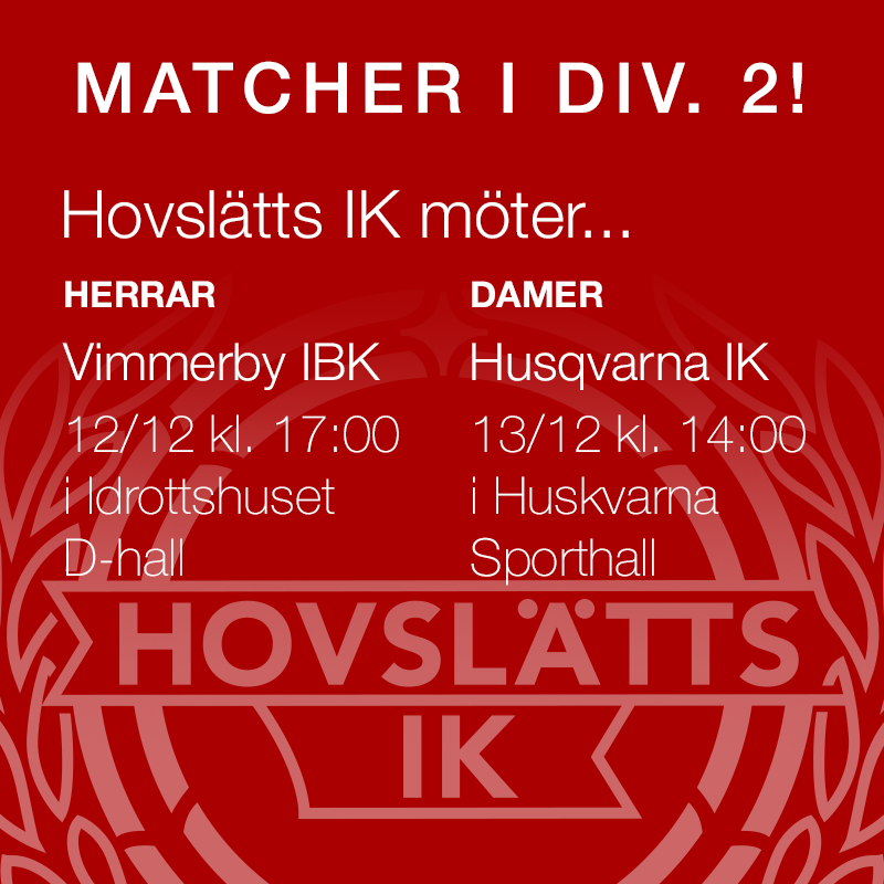 Full fart igen framöver, 20 matcher ska spelas bl.a. återigen 2 viktiga matcher för våra A-lag. Herrarna spelar på lördag en viktig match för att rycka lite i toppen av tabellen. Kom till D-hallen för att stötta dem på läktaren. Damerna har också en viktig match borta mot Husqvarna, i deras fall för att haka på de lagen som ryckt lite i tabellen. I övrigt är de flesta ungdomslagen igång.