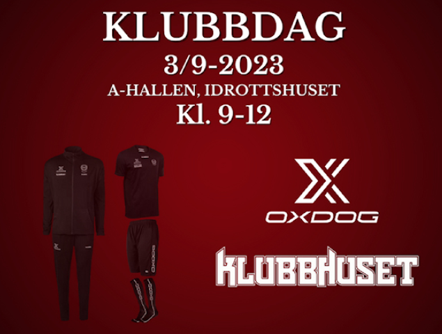 OBS! OBS! OBS! Ny tid för klubbdagen på lördag: kl 10-12 Söndagen den 3 september kl. 10-12 kör vi vår klubbdag i Idrottshusets A-Hall i samarbete med Oxdog och Klubbhuset. KLUBBDAGEN 2023 närmar sig med stormsteg och söndagen den 3 september mellan 10.00 - 12.00 är det dags. I A-Hallen i Idrottshuset kommer våra samarbetspartners Oxdog och Klubbhuset att befinna sig för utprovning, beställning samt köp av föreningskläder och innebandyprodukter. DESSUTOM, allt till ett rabatterat pris för alla medlemmar.